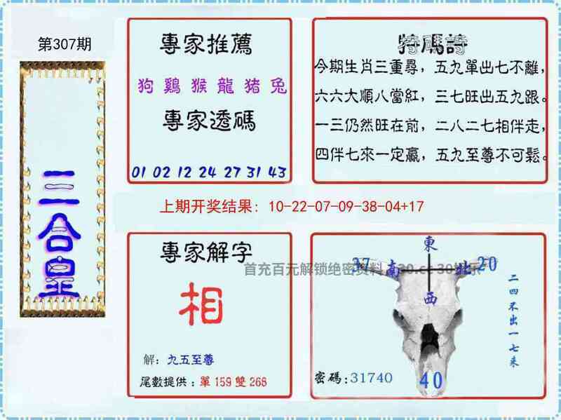 【解三合皇图】开:狗20 307期特码诗:今期生肖三重尋,五九單出七不離,六六大順八當紅,三七旺出五九跟。一三仍然旺在前,二八二七相伴走,四伴七來一定赢,五九至尊不可鬆。 【专家推荐】狗鸡猴龙猪兔 ![]()  |